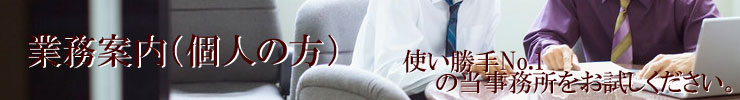 業務の性質上、報酬額は個別の事情により変動します。見積額を提示し、御納得頂いた場合にのみ受任致します。個人の方への業務はすべて事前に見積をお出ししています。まずは無料見積へ